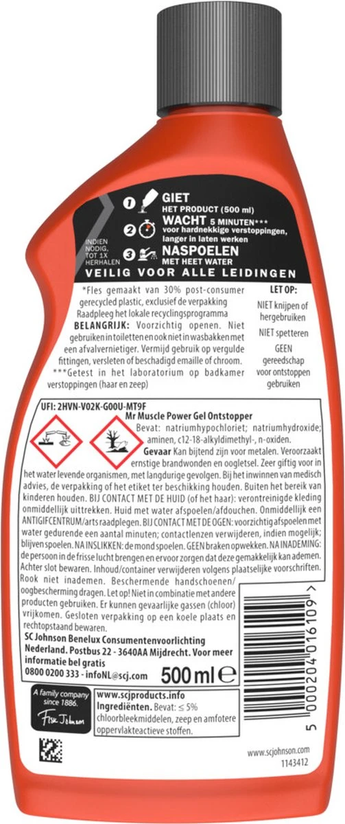 Mr muscle power gel ontstopper vernietigt de hardnekkigste verstoppingen.