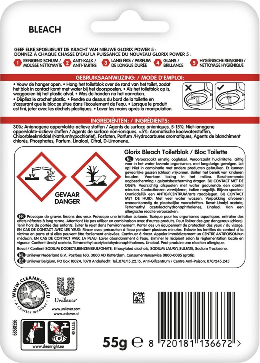 Glorix Power 5 Bleek Toiletblokken – 9 Stuks – Voordeelverpakking